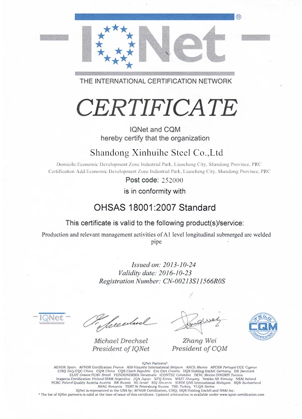 Shandong Xinhuihe Steel Co.,Ltd is located at the beautiful water city of Liaocheng, where is the prodcution base of seamless steel pipes in China.Our company is founded in 2006, with more than 10 years of production and marketing experiences of steel products.As the seamless pipe factory, our factory invested 200 million RMB, and covers an area of 70,000㎡. Now, we have 100 workers and 4 hot rolled lines and 3 cold drawn lines, with annual production capacity of 1,000,000 tons. Our company have 2 production lines for square and rectangular pipes, with annual production capacity of 150,000 tons. All the pipes are produced by seamless pipes, by continuous rollings and deformations. The mechanical properties are highly superior, particularly suitable for clients who have high technical requirements.