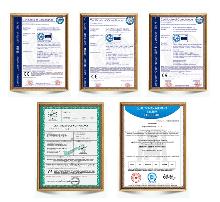 WUYU EXTREM INDUSTRY CO.,LTD.is origniated by a professional and experienced team who work more than 10years in city coco,electric scooters, dirt bike and ATV business filed.With a wide range,good quality,competitive prices and professional aftersales service,our products are becoming more and more popular all over the world,including Belgium,Spain,Germany,France and other countries and areas. Now,our factory have got quality management system certificate ISO9001:2016.And all of our products have passed CE testing.We warmly welcome to having the opportunity of working together with you for future business relationships and mutual success!