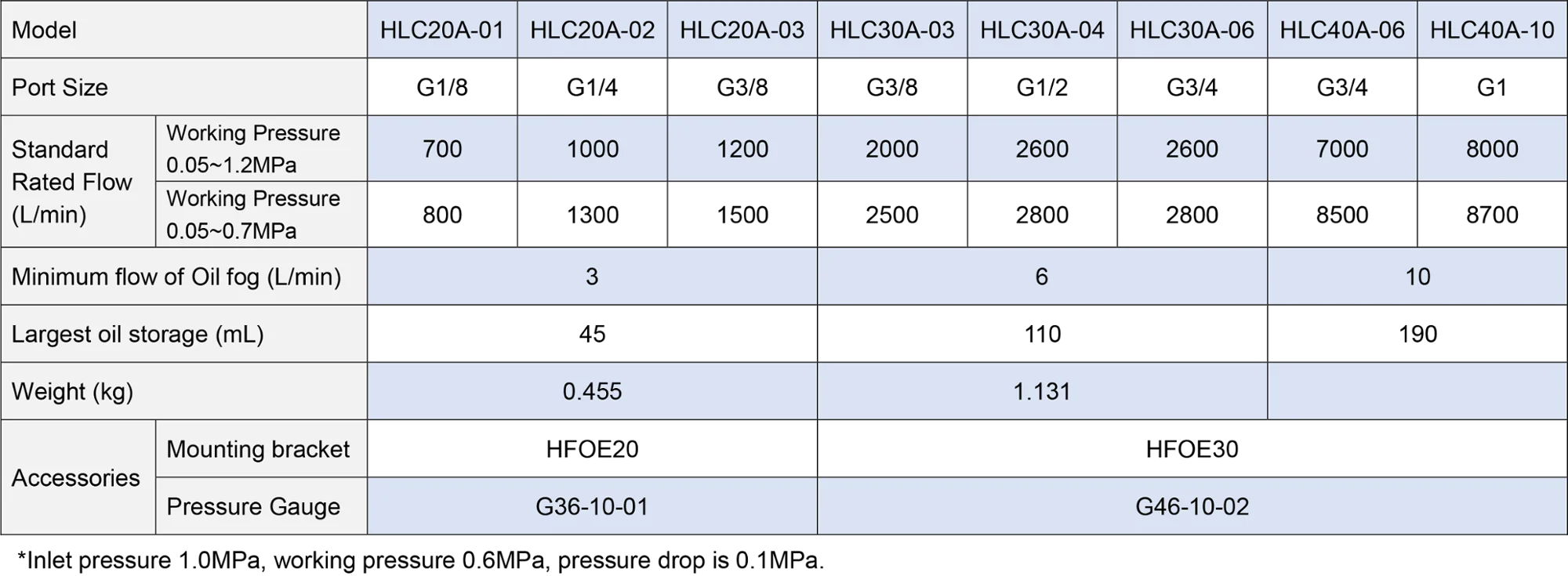 Structural Features | Oil mist type can be automatically throttles | ||