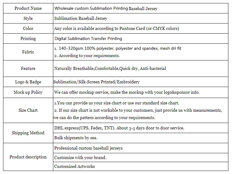 Q 5: If I can’t buy a full container, will you accept less than full container goods? A:Yes,our MOQ for baseball jersey is only 10sets. we will ship by express to you.