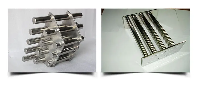 The magnetic filter frame is made of high-quality stainless steel tube and high-B-value rare-earth alloy ferroboron, and is made by special manufacturing method. And is combined on a fixed frame to form a magnetic filter frame. When the iron-containing substance is passed, the iron-containing substance is attracted by the magnetic rod, and the iron-containing substance is firmly adsorbed on the pipe wall so as to ensure the integrity of the equipment and the safety of the product.