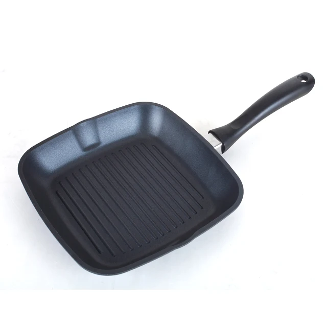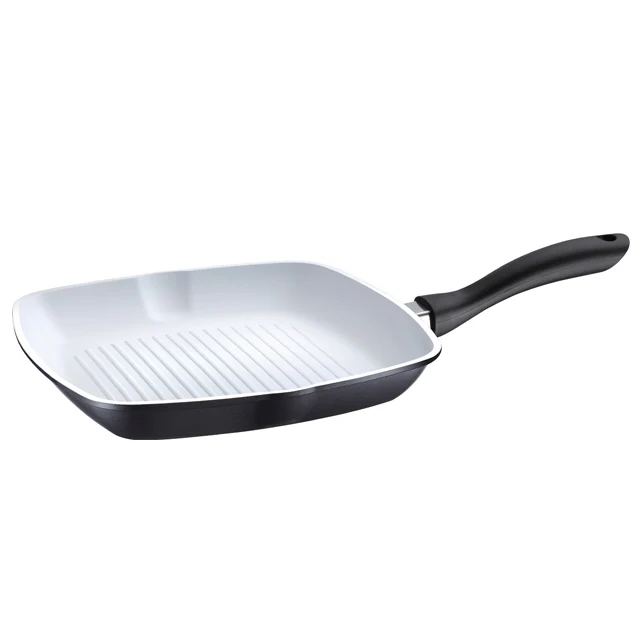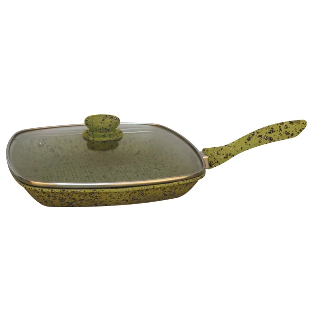 28cm cast aluminum granite marble griddle pan/grill pan with silicone soft touch removable handle