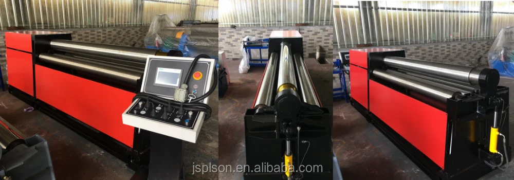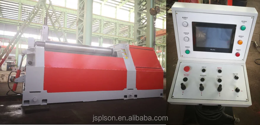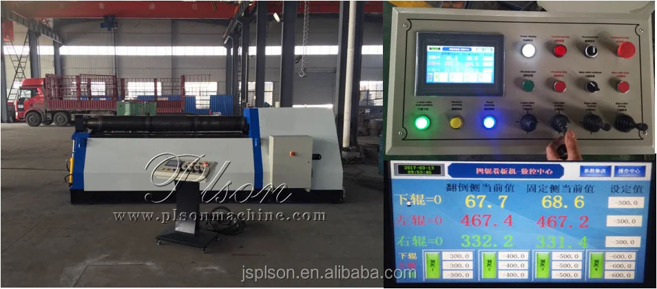 The four roller rolling machines' electrical control system consists of an electric control cabinet, console, and hand held button box operation. Power supply 380V / 50Hz. The main switch has overload protection function and short circuit protection for the main motor. Reversing of motor is controlled by the AC contactor, the control circuit use PLC programmable controller system, less relay, operation reliable, and own long service life. The control cabinet is provided with a finished product rolling process of all the control button and indicator, to master machine operation control and working state control.