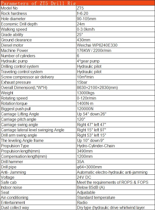 ZT5 Integrated Down the hole Drill Rig for Open Use