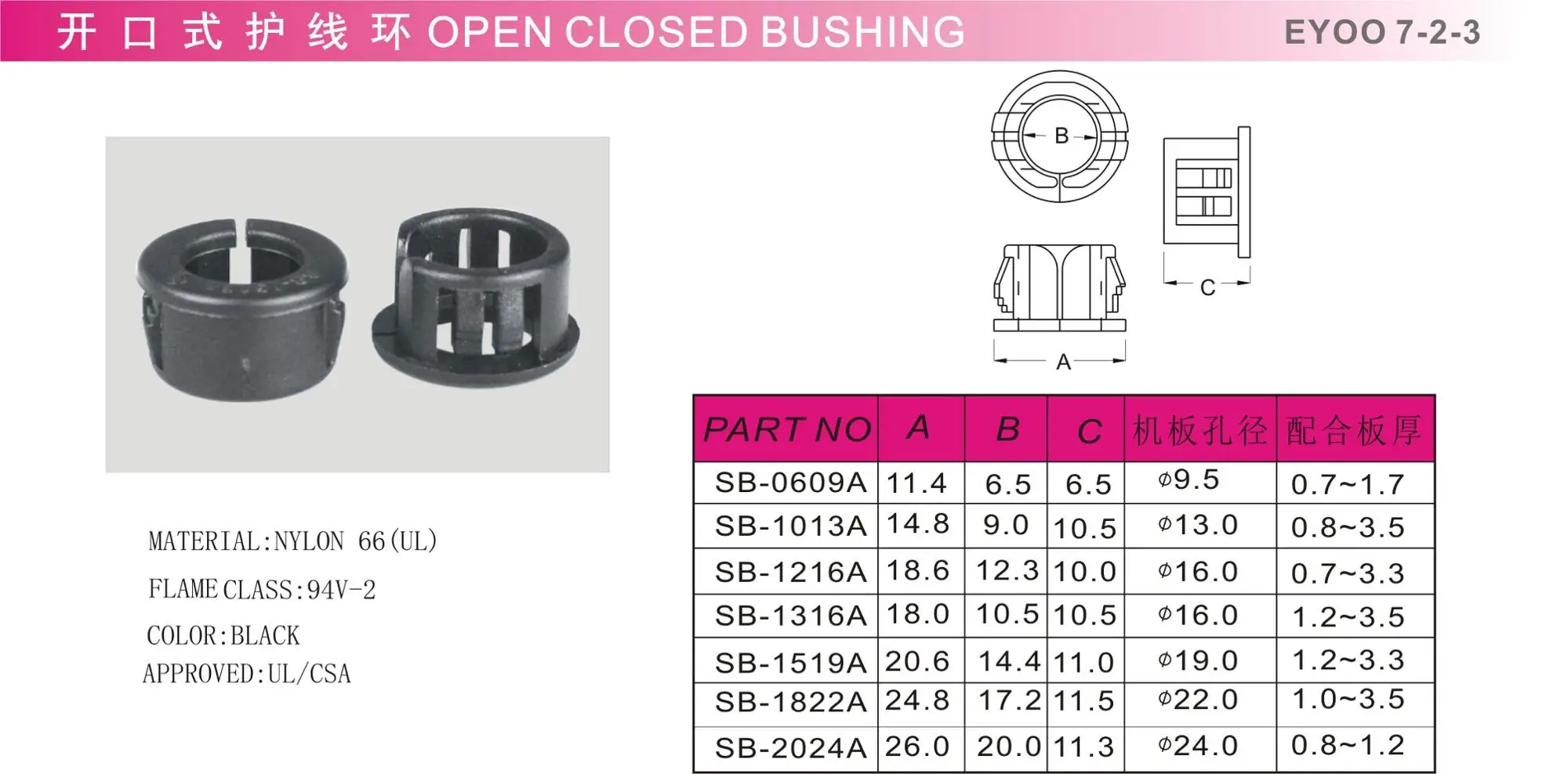 1. Product name: Snap Bushing 2. Part No : SB- 3. Material: Nylon 4. Delivery time: 5-7 days