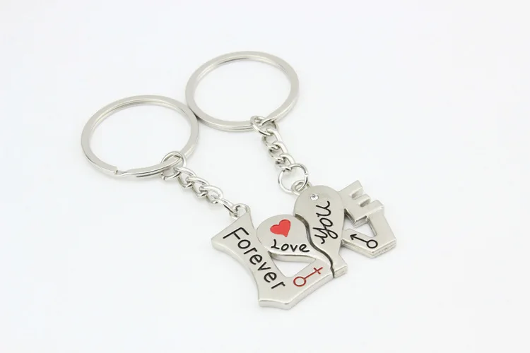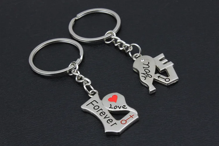 Women Fashion Jewelry Men Keyring Metal Heart love Couple Keychain set key chain