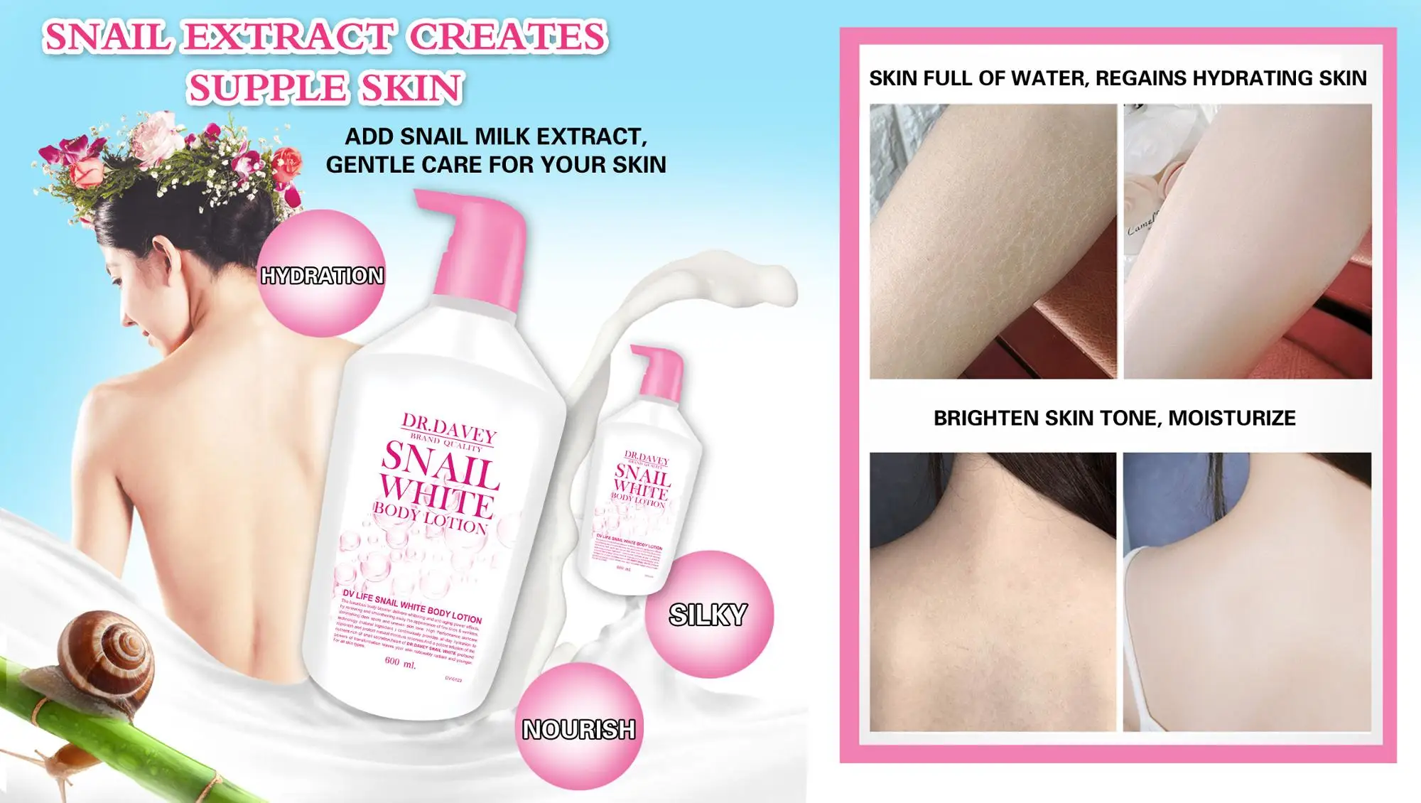 Smooth over your body after shower to keep the moisture in Apply body booster to the rough area like elbows or knees Your skin is smooth, radiant and health looking