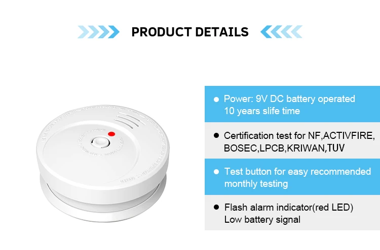 Test Button | Test button for easy recommended weekly testing | Volume | >85dB(A)alarm signal @3M |