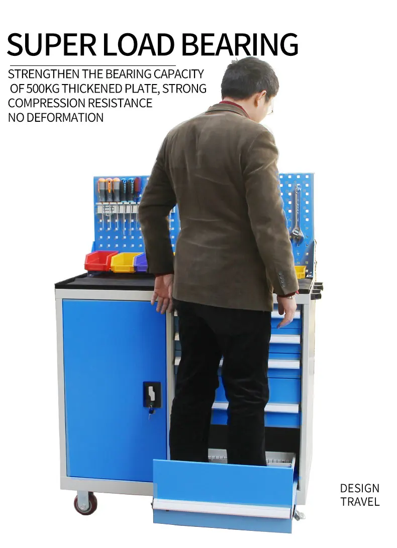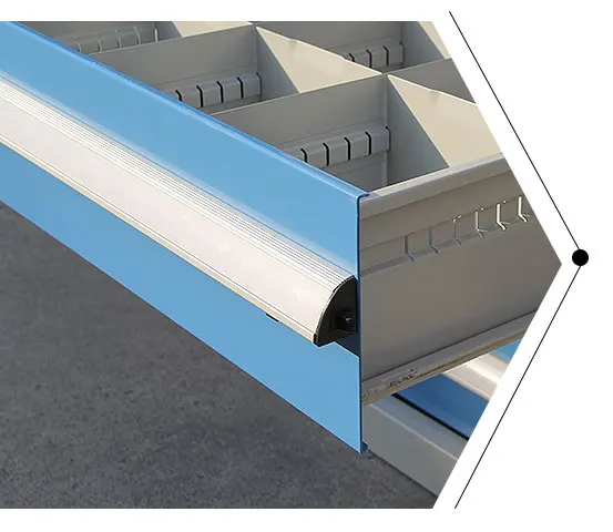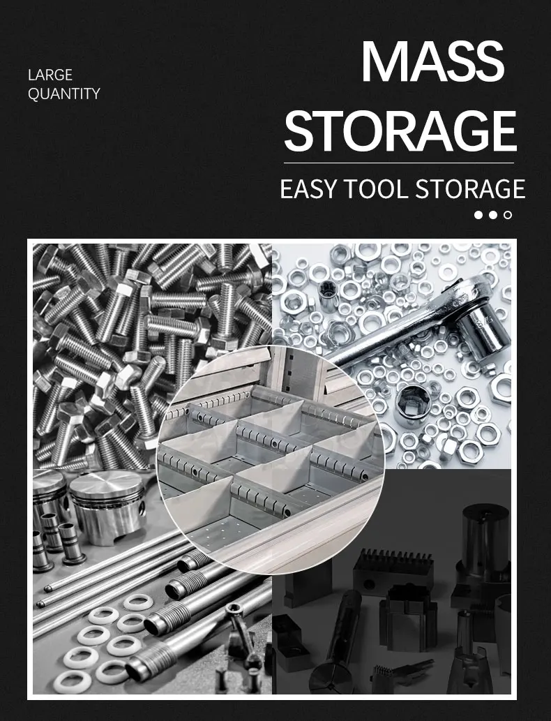 *The drawer configuration of tool cabinet adopts the internationally popular 25 mm multiple configuration, and the minimum height is 50 mm To the maximum height of 400mm, the distribution of drawer height is more detailed; *The number of drawers in the tool cabinet can be configured randomly under the height of the tool cabinet, that is, the total number of drawers Height = cabinet height - 100 mm; *All drawers are equipped with safety buckle device to prevent the drawer from slipping out accidentally; *The drawer can be divided at will, and can cooperate with many drawer partition accessories to change the material Effective management; |