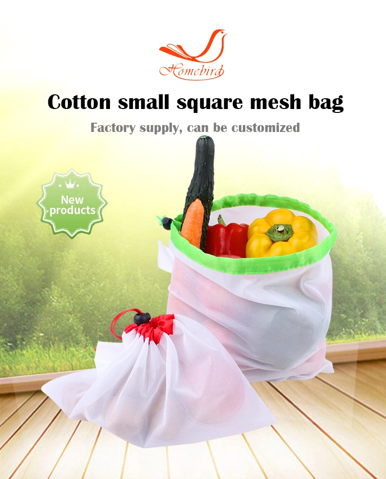 This BSCI factory produce shopping reusable bag polyester drawstring mesh bagis reusable for the pack of the fruits, vegetables, dry flowers, toy etc anything you can imaged.