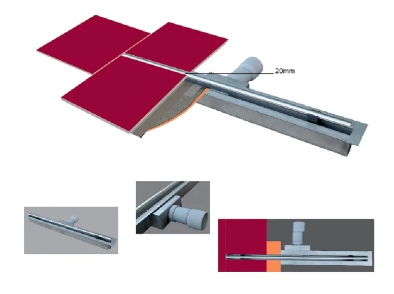 Model No:\tBJ-THIN with side outlet Raw material:\tStainless steel SUS304 / SUS316 Length: \t300-1500mm Standard Width:\t70 / 80 /100mm or customized Grate surface:\tbrushed, polished, electroplated Outlet OD: 40mm