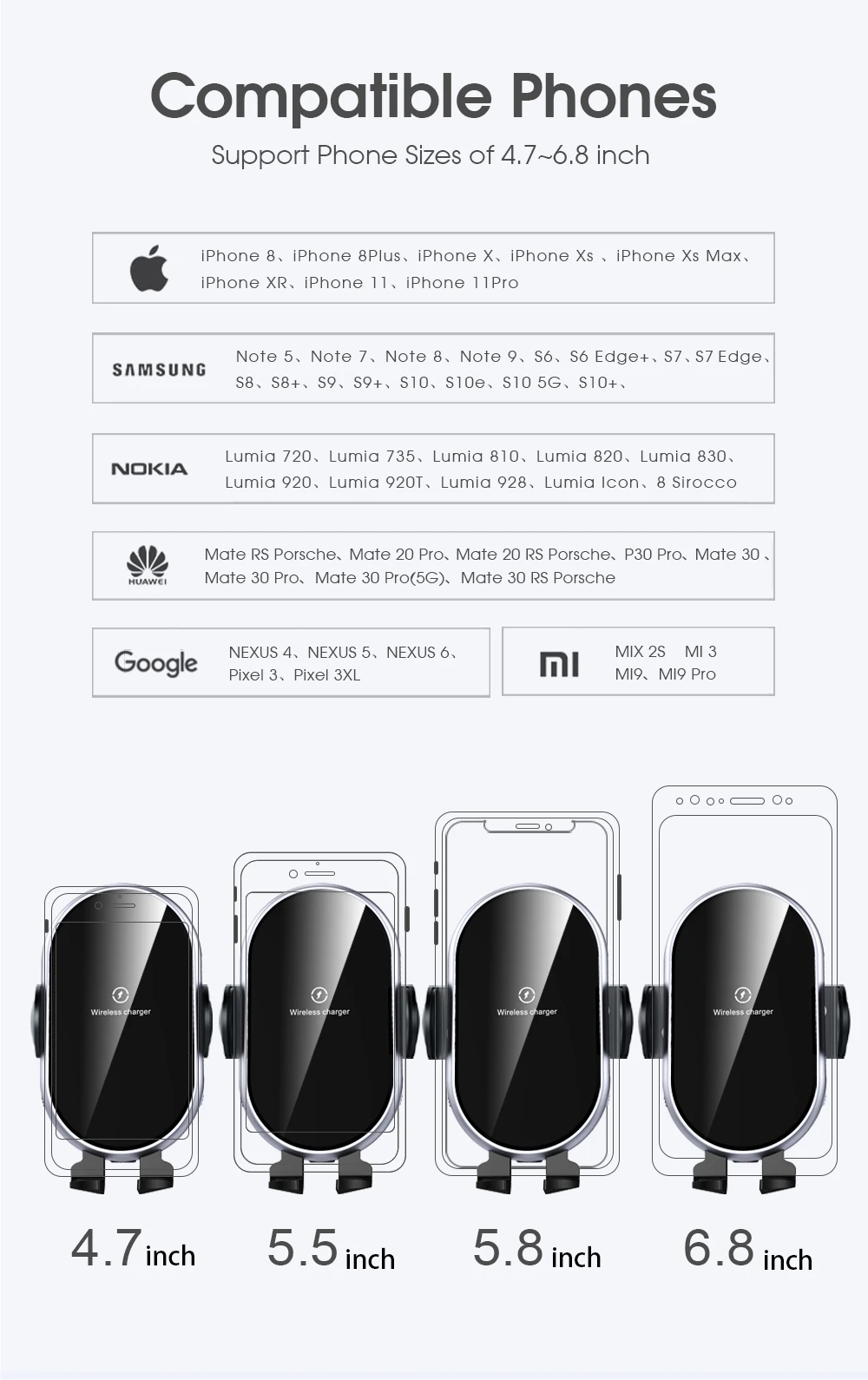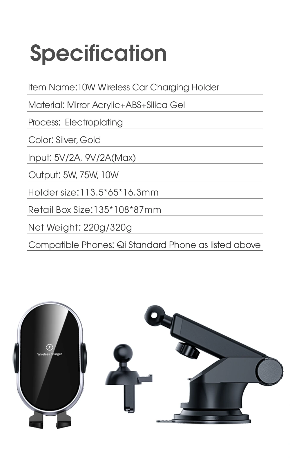 Product name | 10W Wireless Fast Charging Car Phone Holder | ||||||