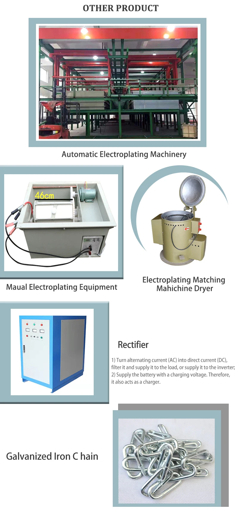 | Usage | Metal Surface Plating Machine Matching Machinery |