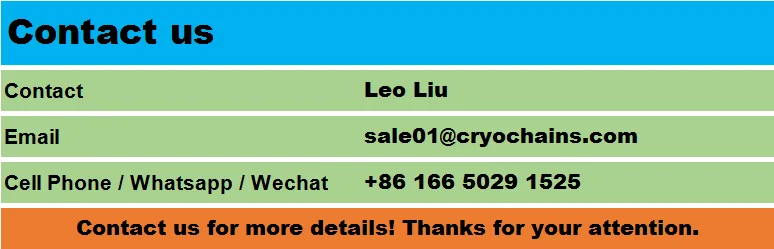 Cryo Chains is a high and new tech company, which is specialized in R&D, OEM and selling cryogenic container, cryogenic freezing equipment, and cryogenic solutions.