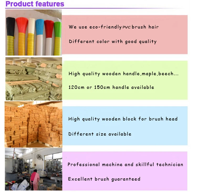 Feature | Stiff or soft bristle is available, plastic or metal adapter is available. Can assembled with a wooden handle, durable and easy to use. Different color,size,shape are available. | ||||||