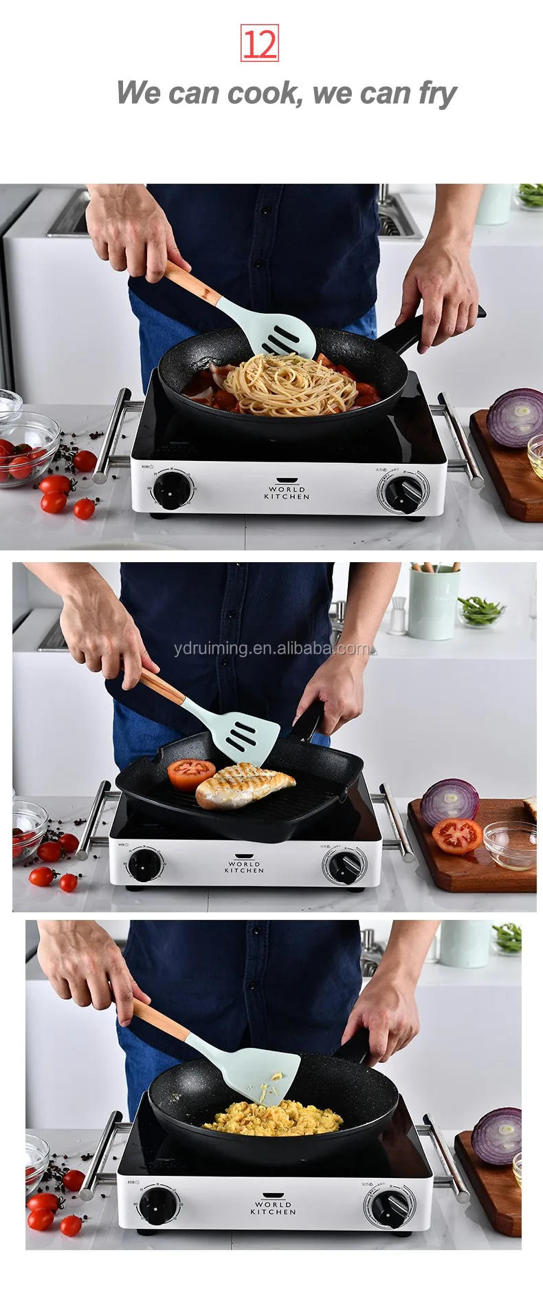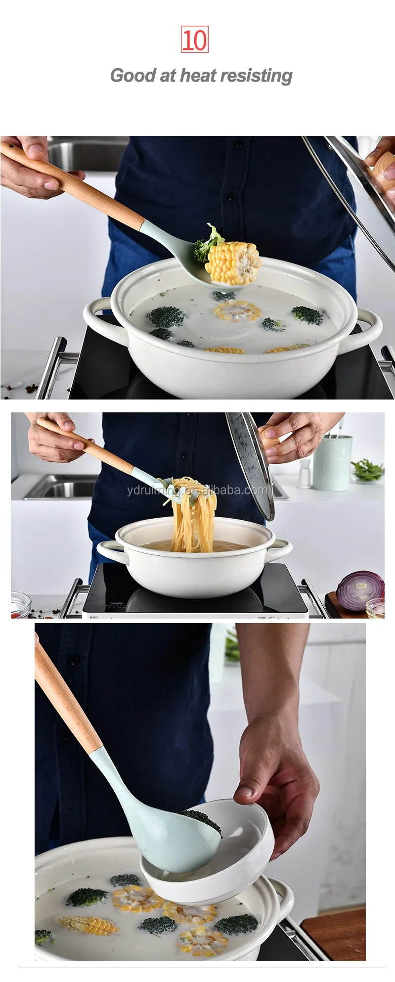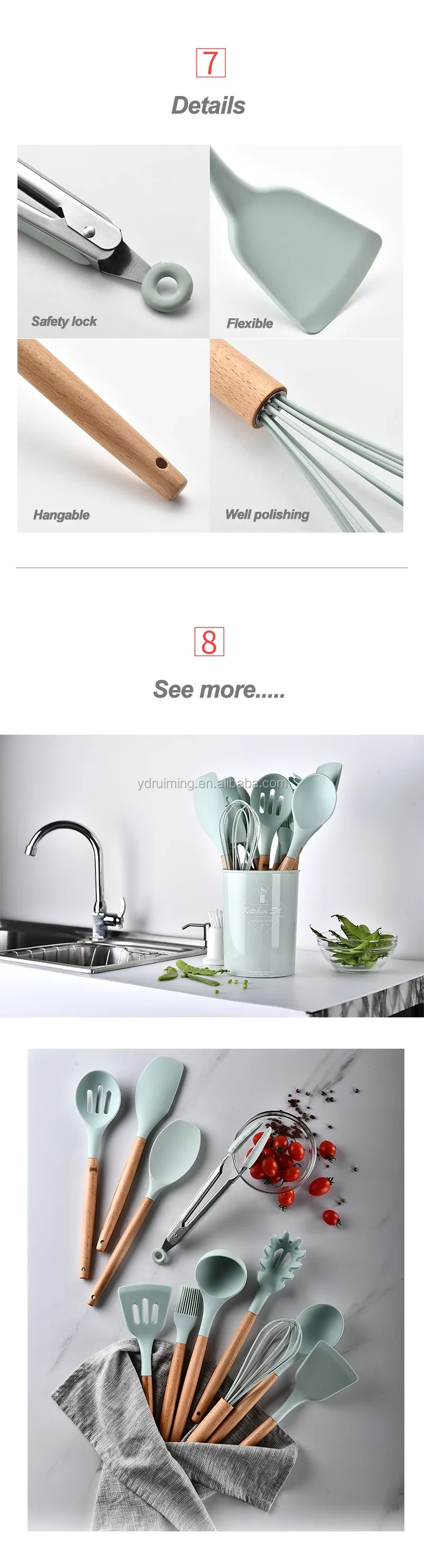 * Food grade silicone heads with wooden hanlde. Every piece is good quality and safety contact with food.