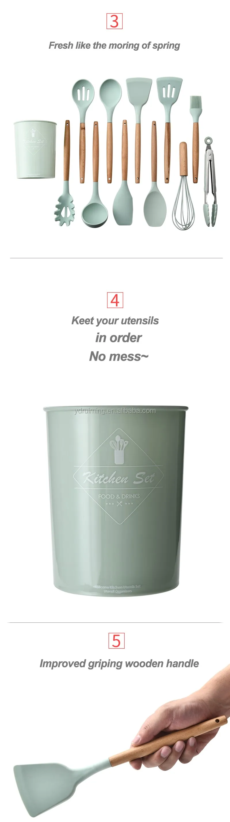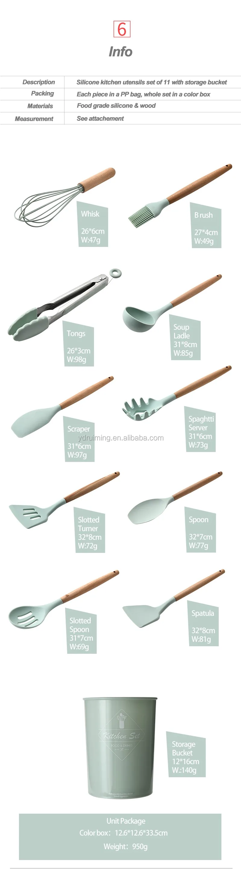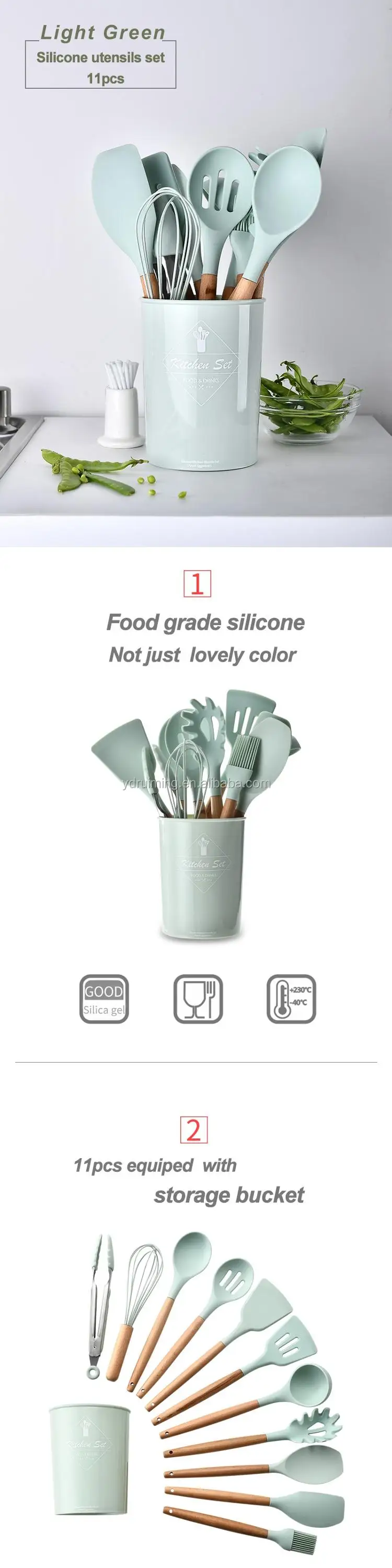 Silicone kitchen utensils set of 11 with storage buckettes