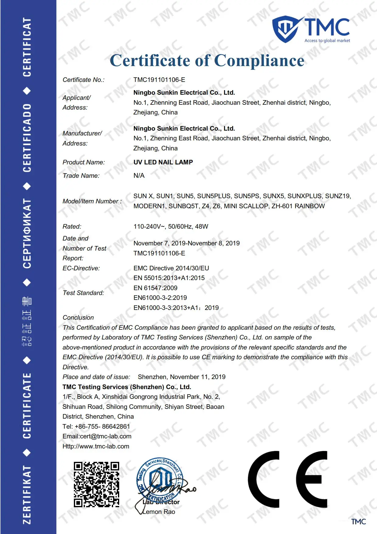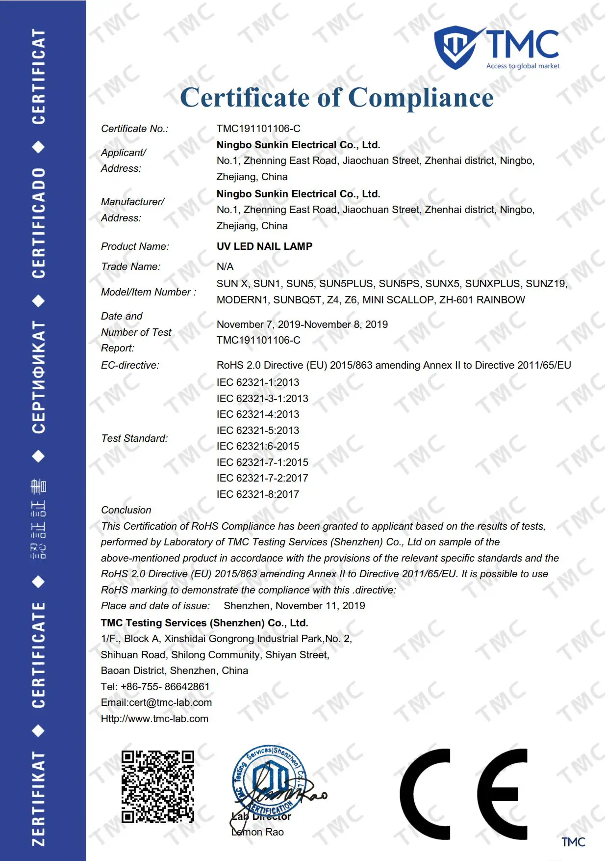 All products are approved CE and RoHS certicate.