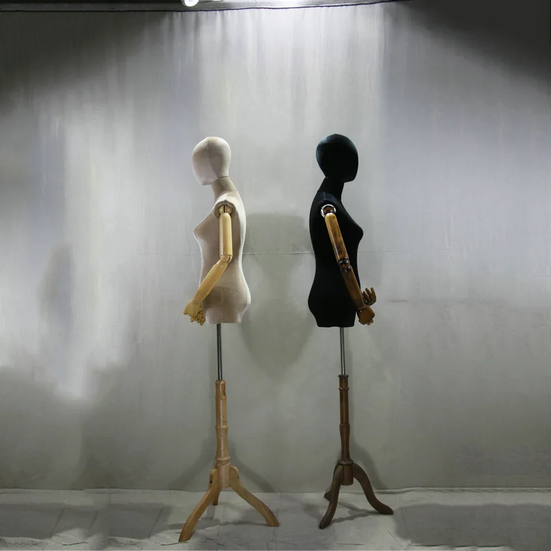 Half body wooden mannequin torso with arms mannequin head and torso velvet mannequin dress form