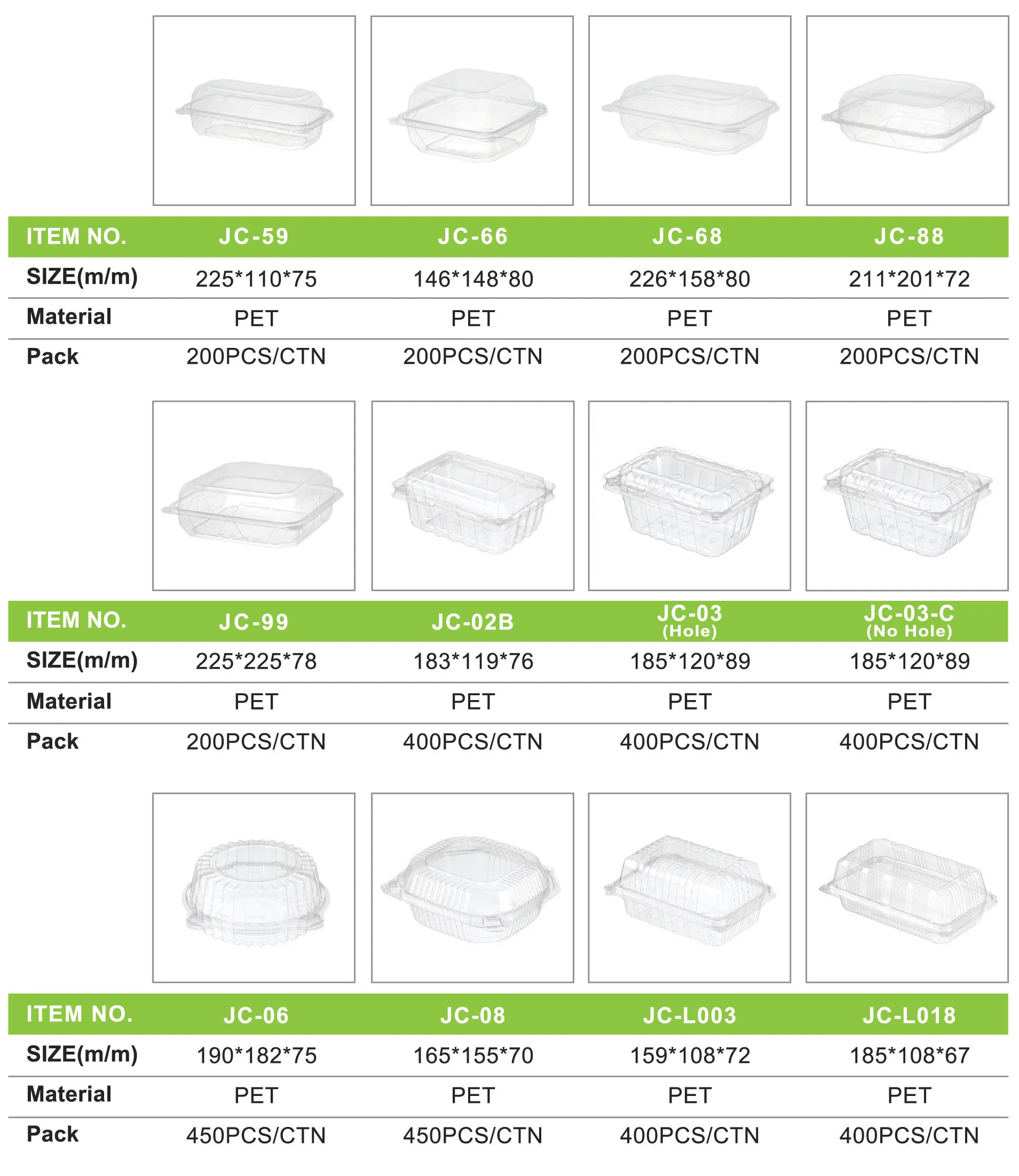 JC, certified by ISO22000 and HACCP, has been emphasizing on the product development and quality control. Our food-grade production environment is equipped with the newest state of art facilities to manufacture high quality products and along the side with quality management to ensure the best supply from the stage of raw material, sheet extrusion, thermoforming, printing till end of packaging.