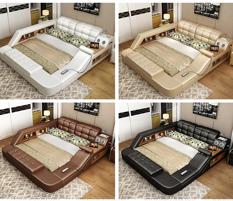 Multifunction Leather Smart Bed King Sizes Massage Tatami Bed With Speaker Modern Bedroom Furniture