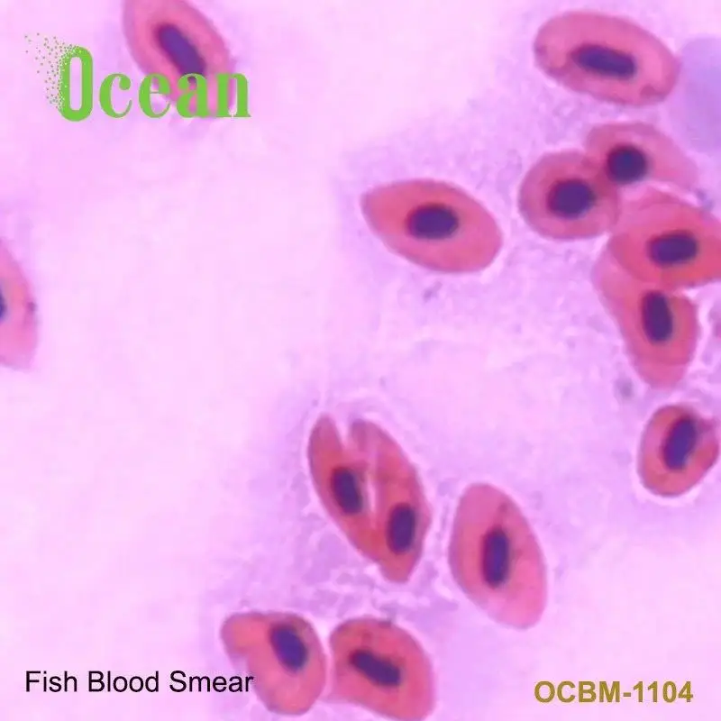 Fish Blood Smear zoology slides for medical research on prepared microscope slide