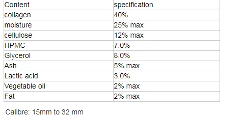 Collagen casings is fabricated from collagen, which is obtained from the curium layer of selected split cattle hides. The collagen-rich tissue is homogenized under high pressure, ring-extruded (hose-shaped) and hardened and results in a mechanically strong casing.Collagen casings are permeable for smoke and water vapour. As collagen is an animal tissue fit for human consumption, the thin collagen casings are easy to chew and “edible”. They are an alternative to replace natural sheep, goat or thin pig casings.The advantages of collagen casings are their standard diameter and strength and that they can be “shirred” i.e. folded together, in long lengths and used for manual or automatic filling stations without pre-soaking in water.