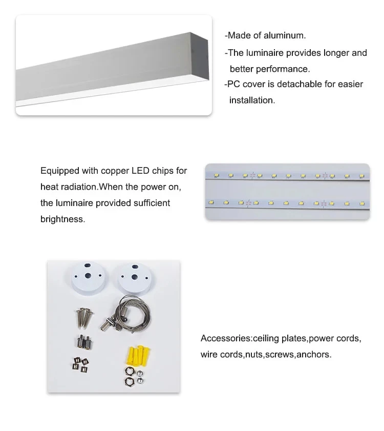 aluminum frame diy 18w 36w 40w 1200mm anti glare dimmable suspended led office linear light