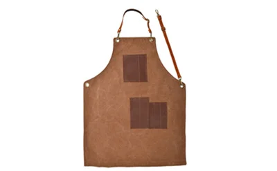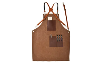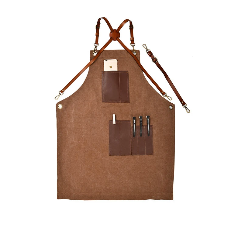 New canvas apron logo leather shoulder strap with leather pocket barber apron for men wear resistant grill apron for men