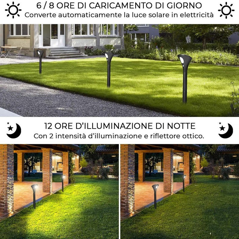 * Super-Bright Solar Garden Lights: This Solar lamp provides supreme illumination --- the reflector design and trapezoidal light distribution. And uses a high-quality COB light source for high brightness and long life.