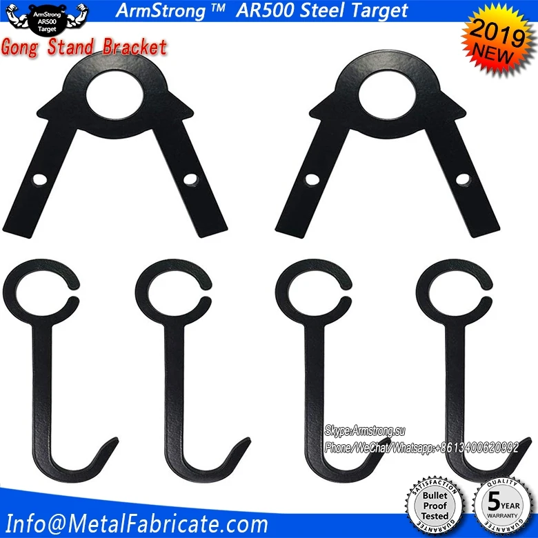 Portable Steel Challenge Plate Rack For Handgun Training With 6" AR500 Targets Kit Includes the Following: 2- Budget 2X4 Bracket ends w/hardware 6- 2X4 brackets for hanging gongs 6- 6" Round 3/8" AR500 Gongs -Easy Install, Designed to be used with 2X4's (not included). Asseble the end brackets Slide over 2X4 on the ends, Slide the Hangers over the center 2X4 and hang the gongs on the hooks. -Comes Un-painted -Recomended for handgun/ pistol use -Great for practice and training purposes -Long lasting for potentially years of fun, and practice -Recommended 3- 8 foot 2X4's to be picked up from your local lumbar yard.