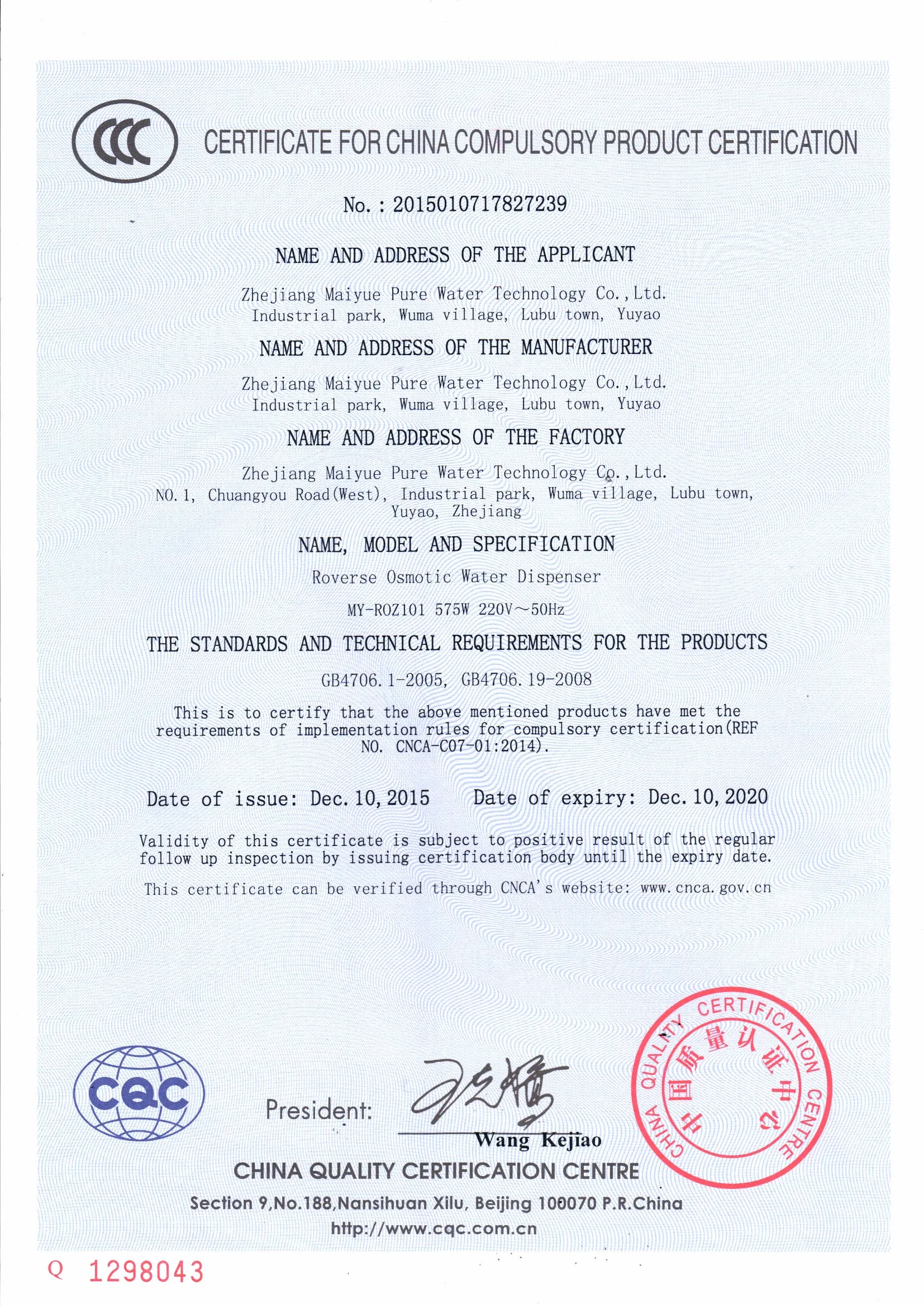 GAC-20BB | 20” granular active carbon cartridge | Active carbon and PP | Remove the chlorine, taste, and odor from the water. |