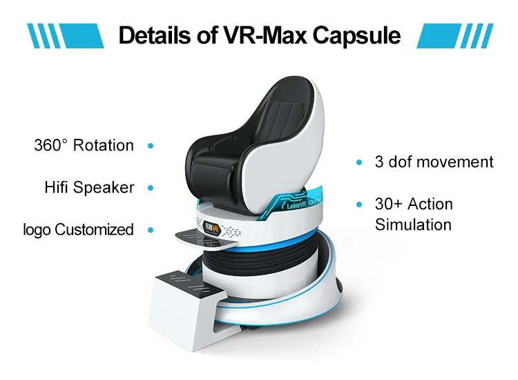 VR Theater is consist of many LEKE VR-Max Cinema, the quantity of VR-Max Cinema is based on your playground size, it is very flexible. VR Theater is a Professional management system, specifically developed for cinema. This VR Theater is totally different form traditional Theater , This is a combination of virtual reality, 3dof free movement platform and various kinds special effect. It can make players feel like in a reality world.