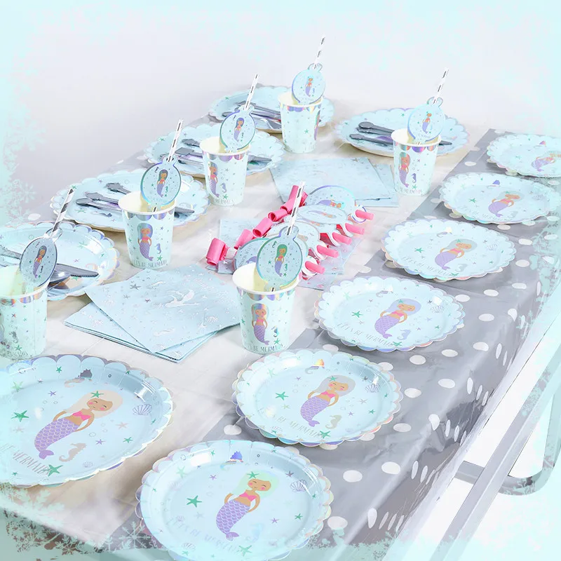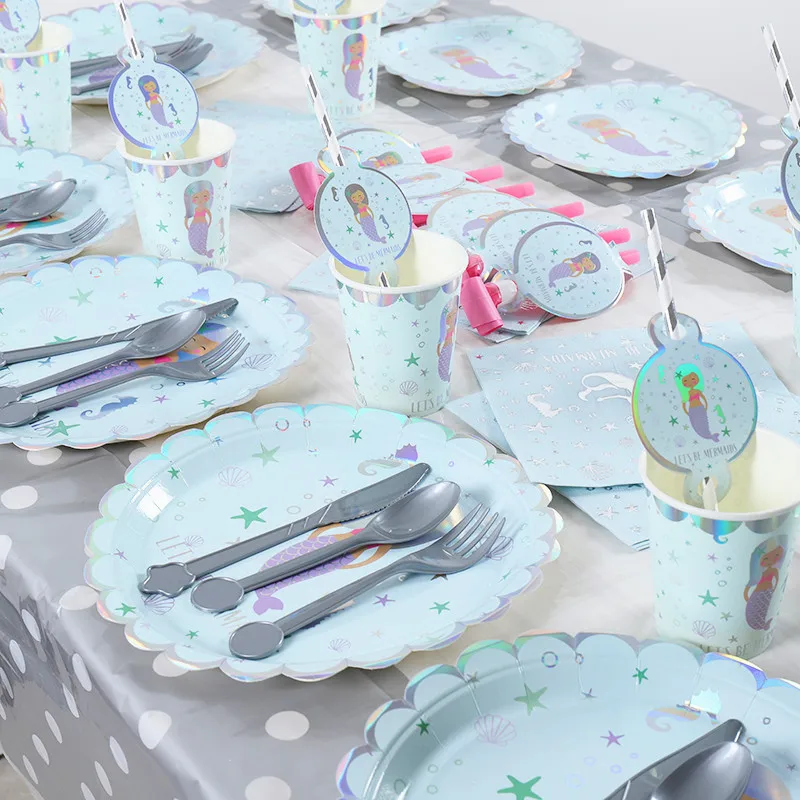 New hot stamping silver mermaid party supplies kids birthday theme party supplies set Serve 6