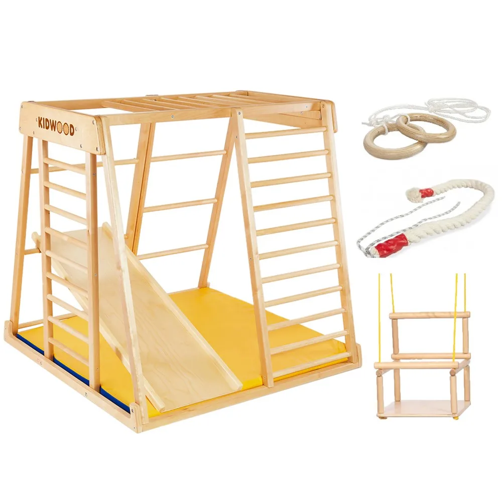 Maximum satisfaction for those who want to instil in their child a desire to reach the highest of heights. Changing which side goes face-down opens up new possibilities. The ladder leads the way up, right to the top of the climbing frame. A monkey-bar ladder develops children's coordination and strengthen different muscle groups in their arms and back. The side-mounted ladder is an interesting addition to the playset. Your child can get to the monkey bars from any side!