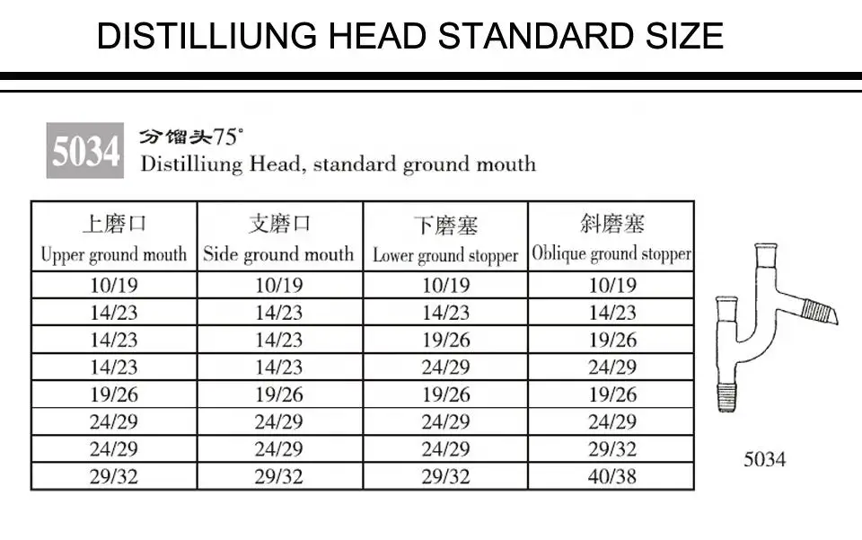 Synthware distillation adapter with a 10/18 standard taper outer joint for a 76mm immersion thermometer. The adapter has a standard taper top outer joint and inner joints for the bottom and side.
