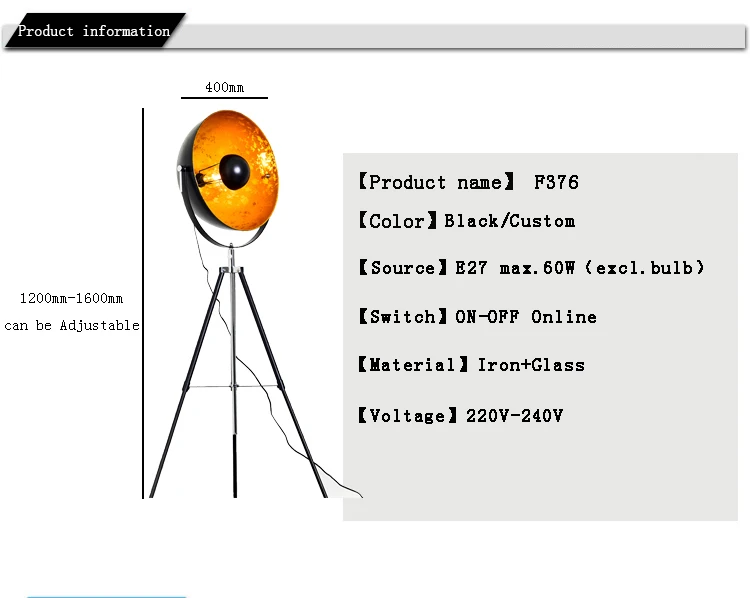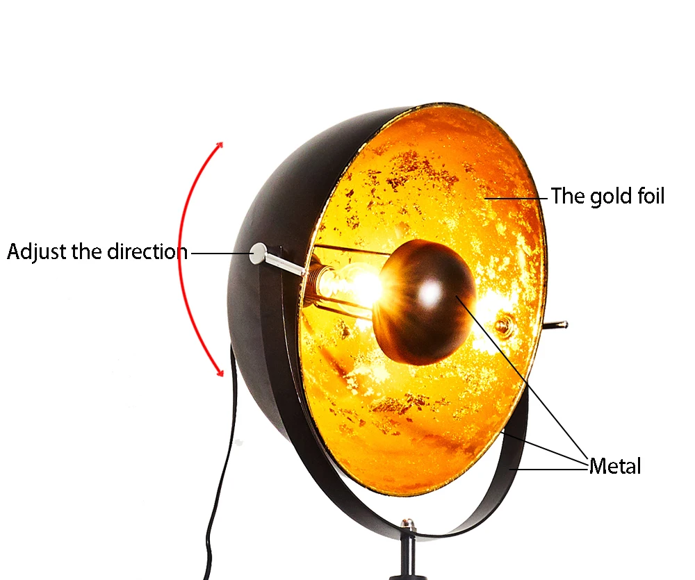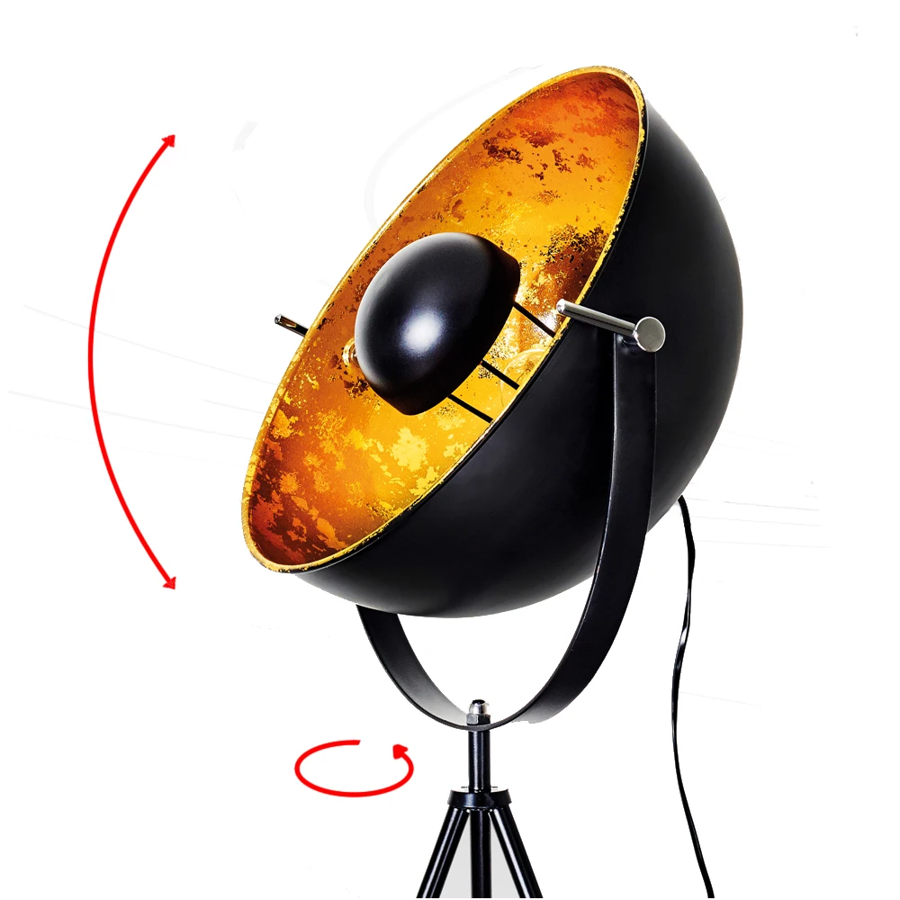 halogen Matt Black Irion Up and Down Tripod floor lamp with Gold Foil inner