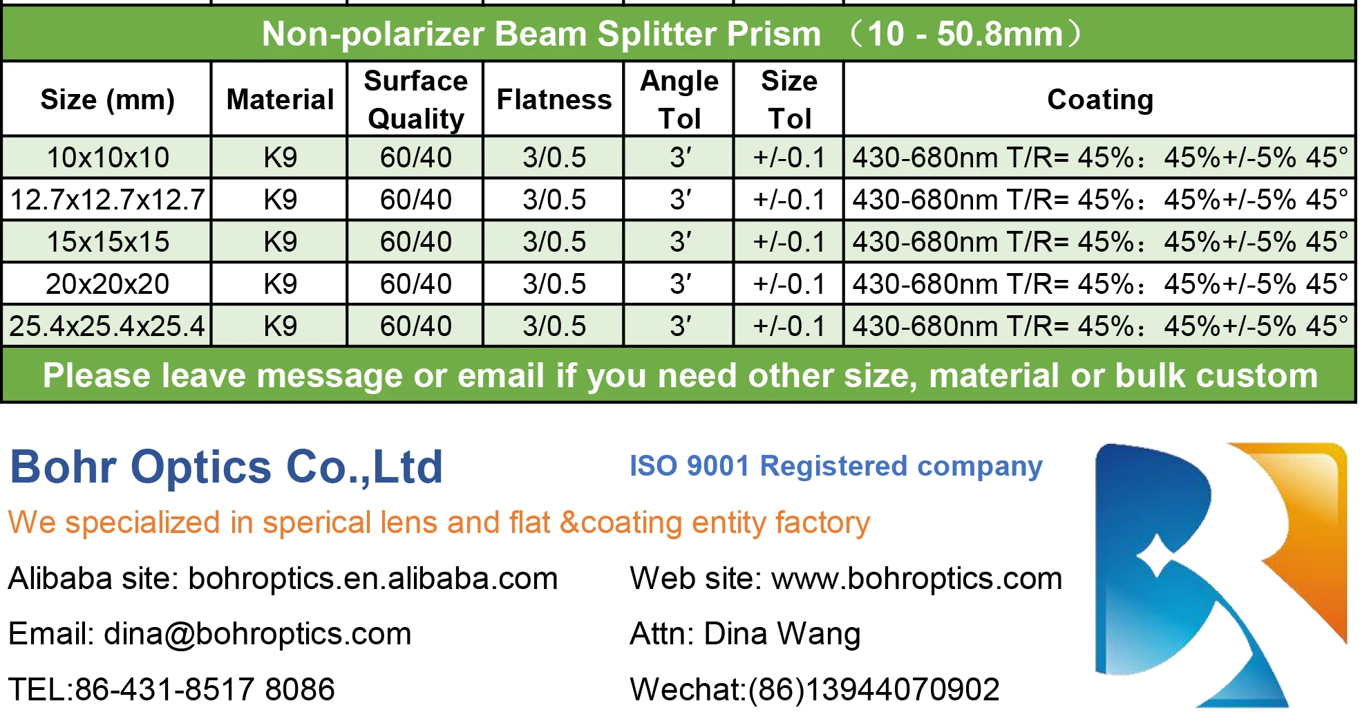 ZnSe | Ball and half ball | Combiner prism | Special-shaped | Accessories | ||||