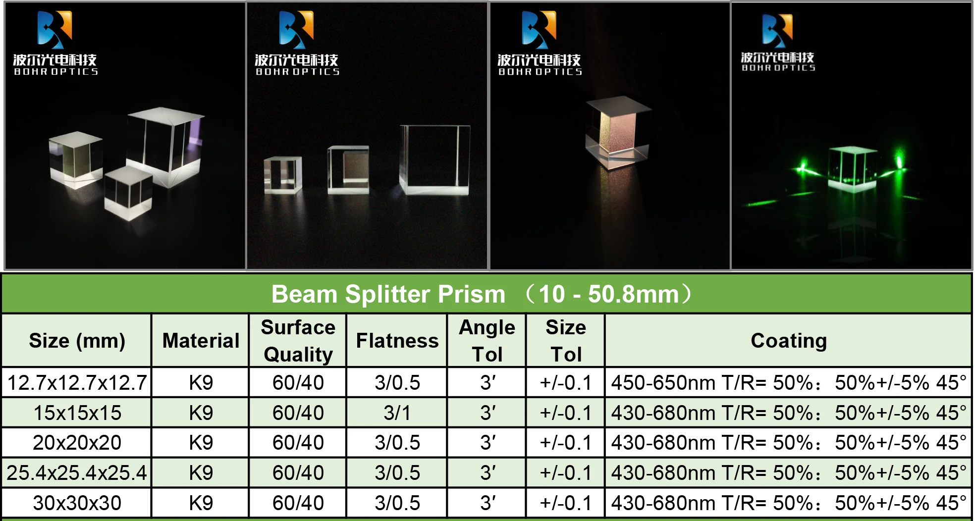 Ruby | Meniscus lens | Triangular prisms | Prism mirror | Beamsplitter | ||||