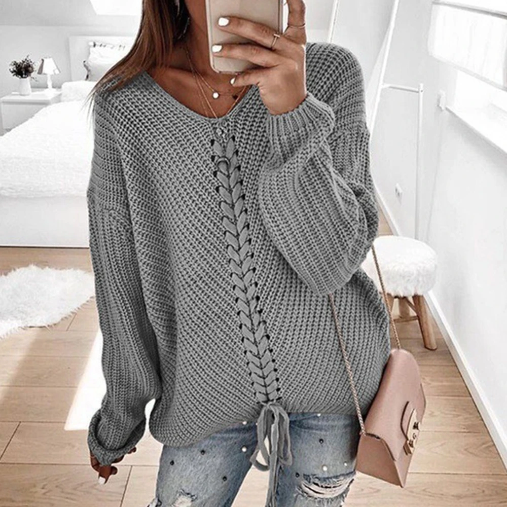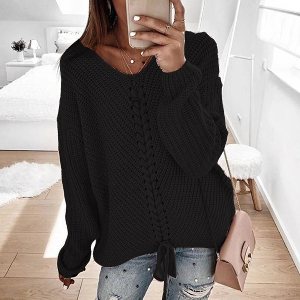 Women's Long Sleeve V Neck Plus Size Knitted 2019 Fall Oversized Pullover Jumper Sweaters