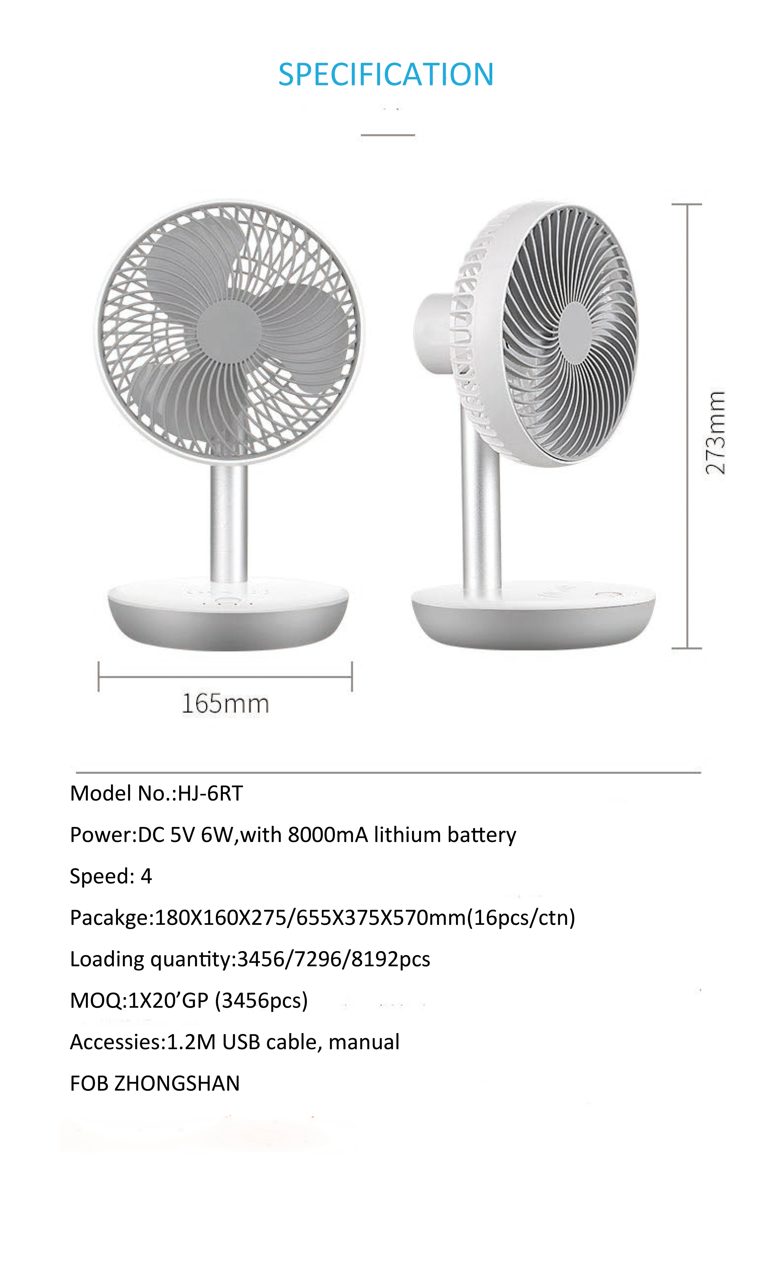 Product Name | Portable 5V copper DC motor personal desk fan 6 inches outdoor fan with wireless charging function |