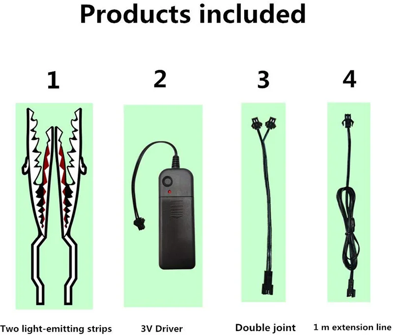 | Complete set included | 2*EL tape+1*extended cable+1*inverter+1* 1to2 connect cable |