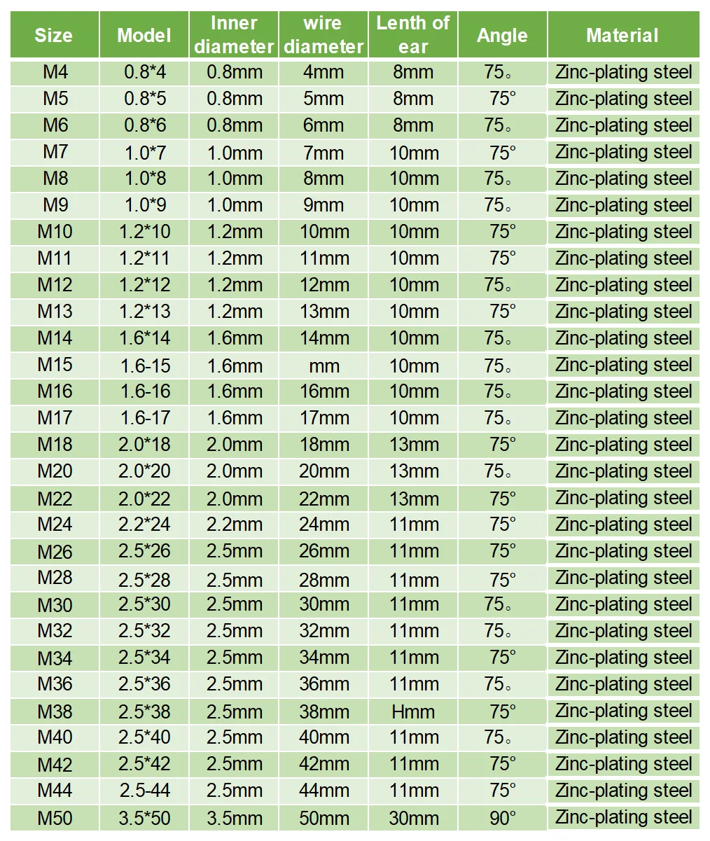 Material | spring steel | Size | 5-23mm | ||
