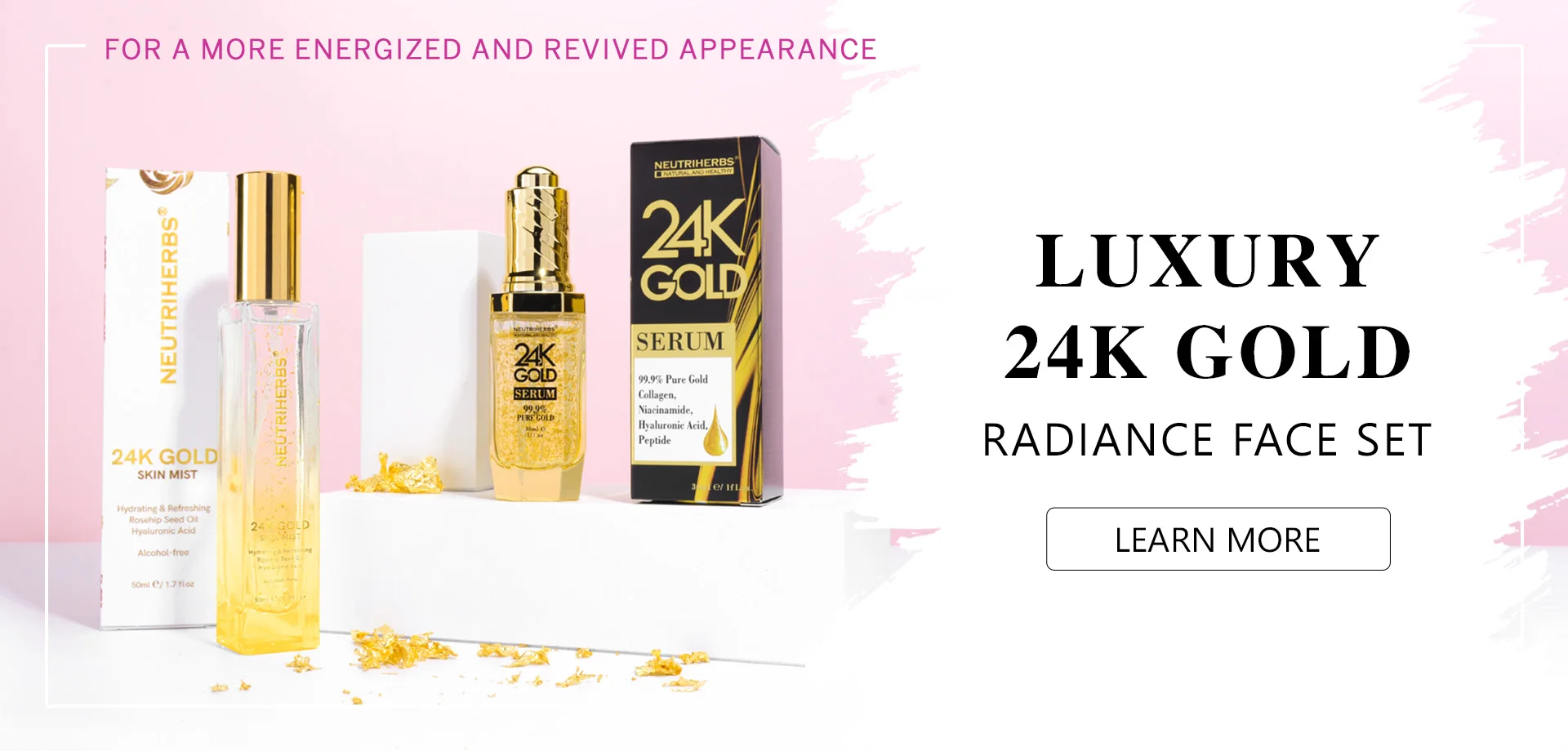 24K Gold - Gold has been used in skincare for hundreds of years due to its anti-aging properties. 24k Gold can reduce the breakdown of elastin and collagen, increasing the elasticity of the skin.
