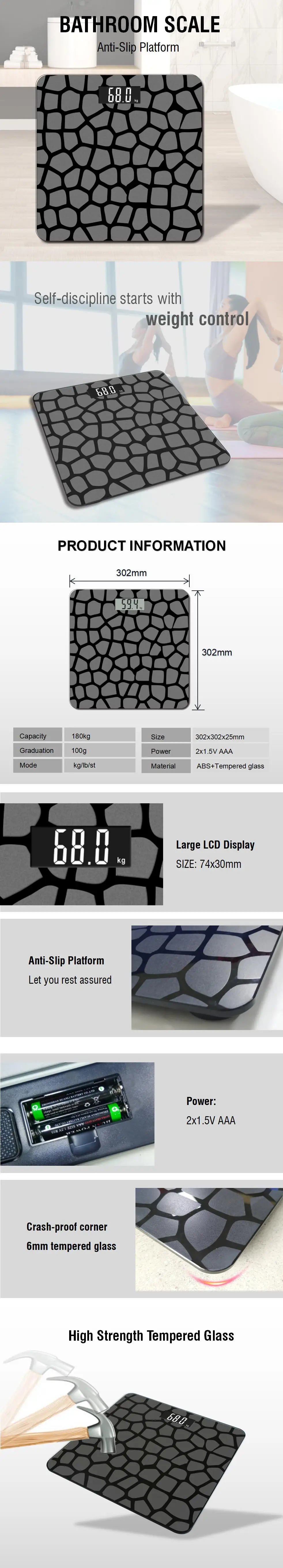 Amazon hot selling anti-slip bathroom weighing scales household electronic digital scales