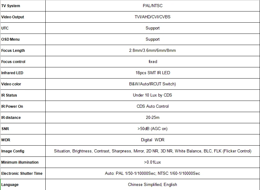 Featuring fixed lens, 50-82ft(20-25m) long-distance night vision range, this outdoor security camera which allows you to clearly see in darkness, keeping your property protected day and night. With 18 SMT infrared LEDs, it has clear infrared night vision mode.