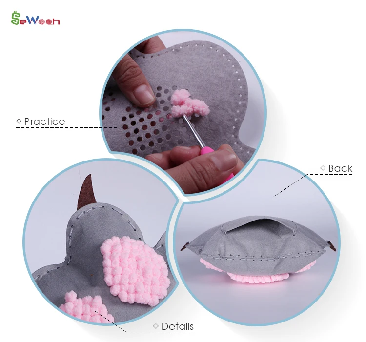 *Content | 1 Color of Chenille Yarn, 1 Color of Floss, 1 Needle, 1 Crochet Hook, 7 Precut Felt Shapes, 1 Stuffing. | |