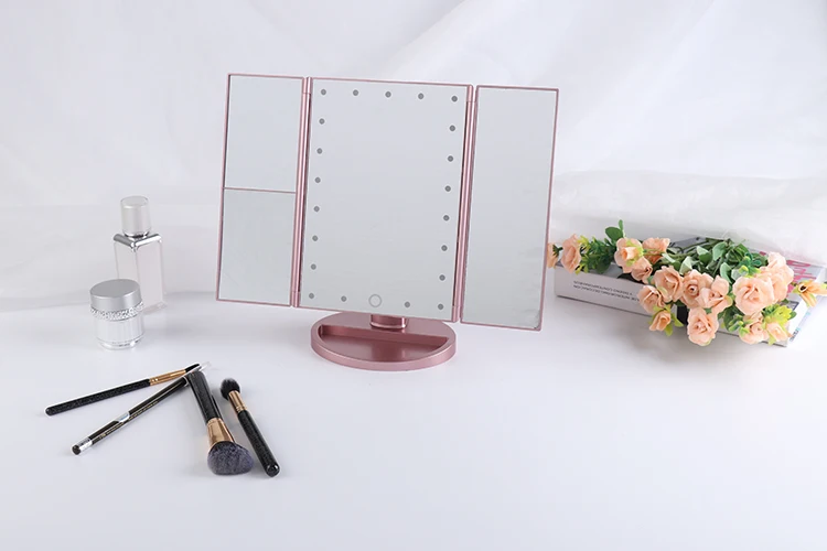 C&C Custom Triple Foldable 1/2/3X Magnifying Smart USB Lighted Led Makeup Touch Cosmetic Mirror Makeup Vanity Mirror With Lights