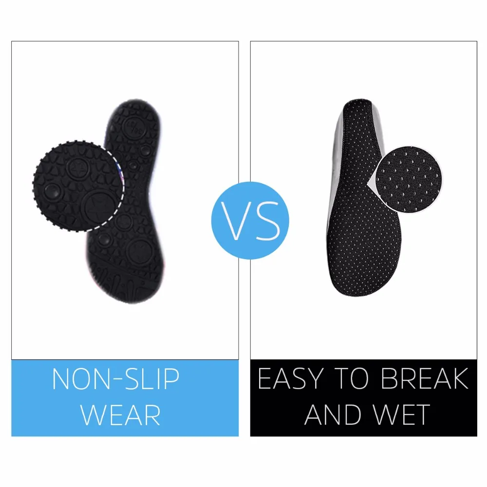 Anti-slip rubber sole are flexible yet thick enough to protect your feet from stepping on rock and stone. The water shoes outsole is more wear-resistant and have better anti-skid than others.tic containers and bottles in all shapes.