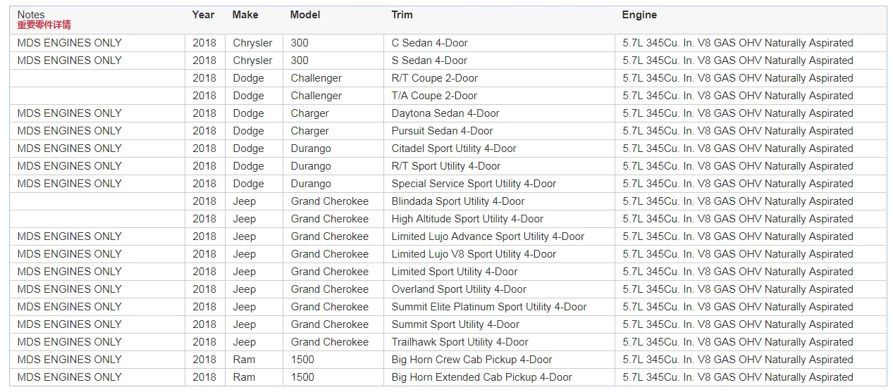 OE No. | 53021728AD 53021728AE 53021728BB 53021728BC |